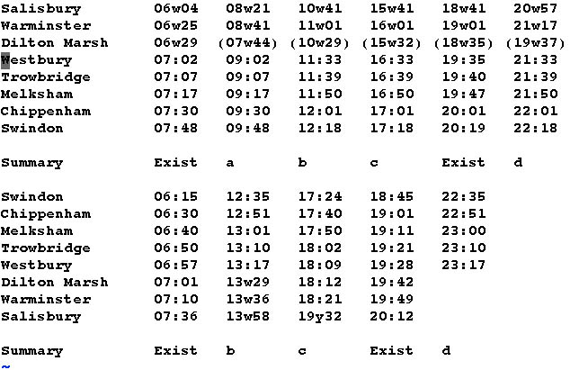 w - Change at Westbury • y - Change at Warminster